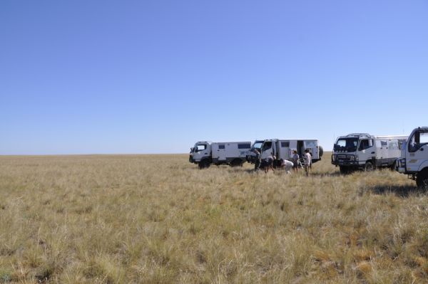 On the map was a track North West but it was not to be found thus we headed of on a bearing towards the Lines of Convergence at 47 degrees North and 118 degrees East. At this Convergence point was a steel post perhaps marked by the oil exploration company who have worked this area some time ago. We also knew that the track was close to this point and just before arriving located the track. Almost impossible to see unless you were running on top of it. Only the change of grass colour differentiated it from the surrounds.
